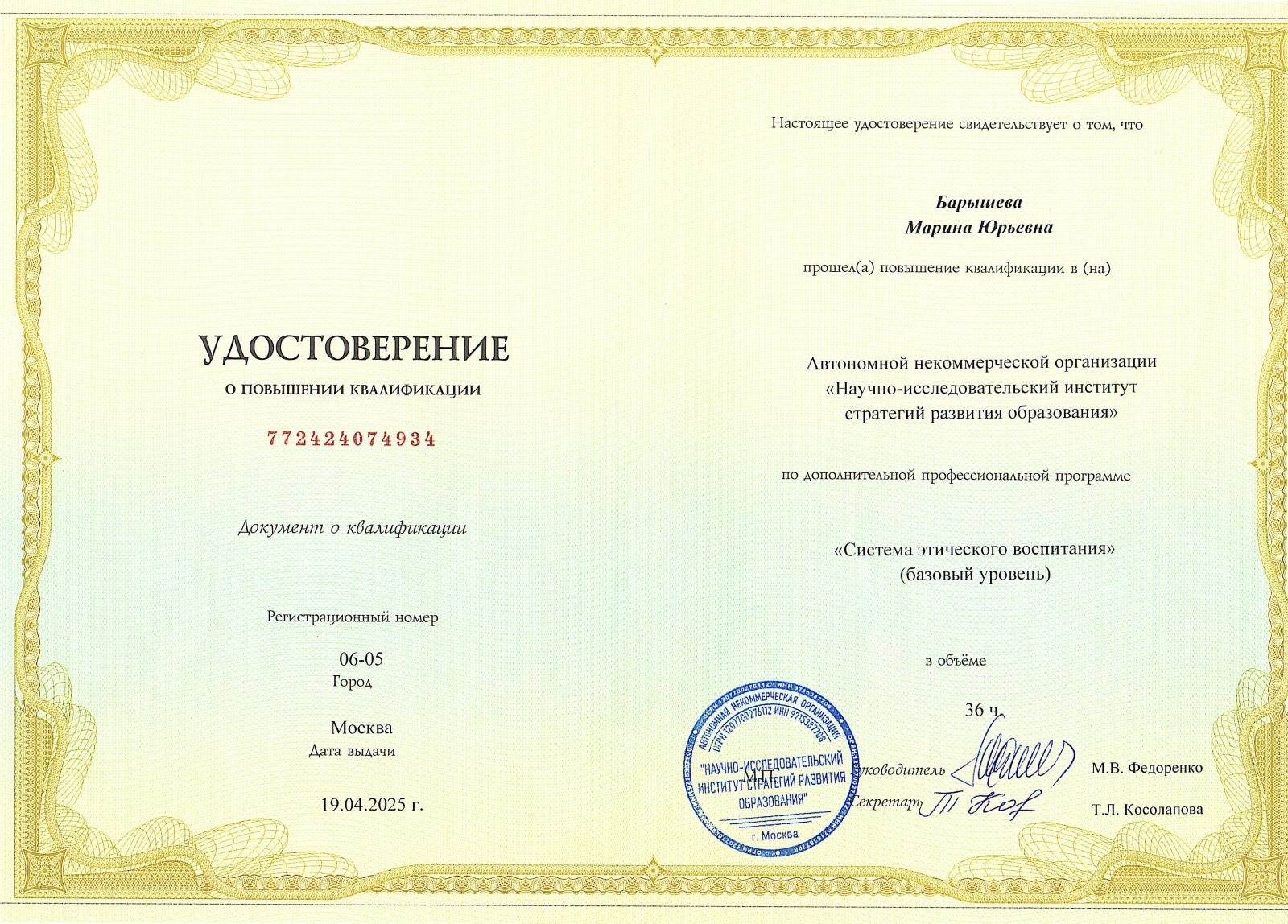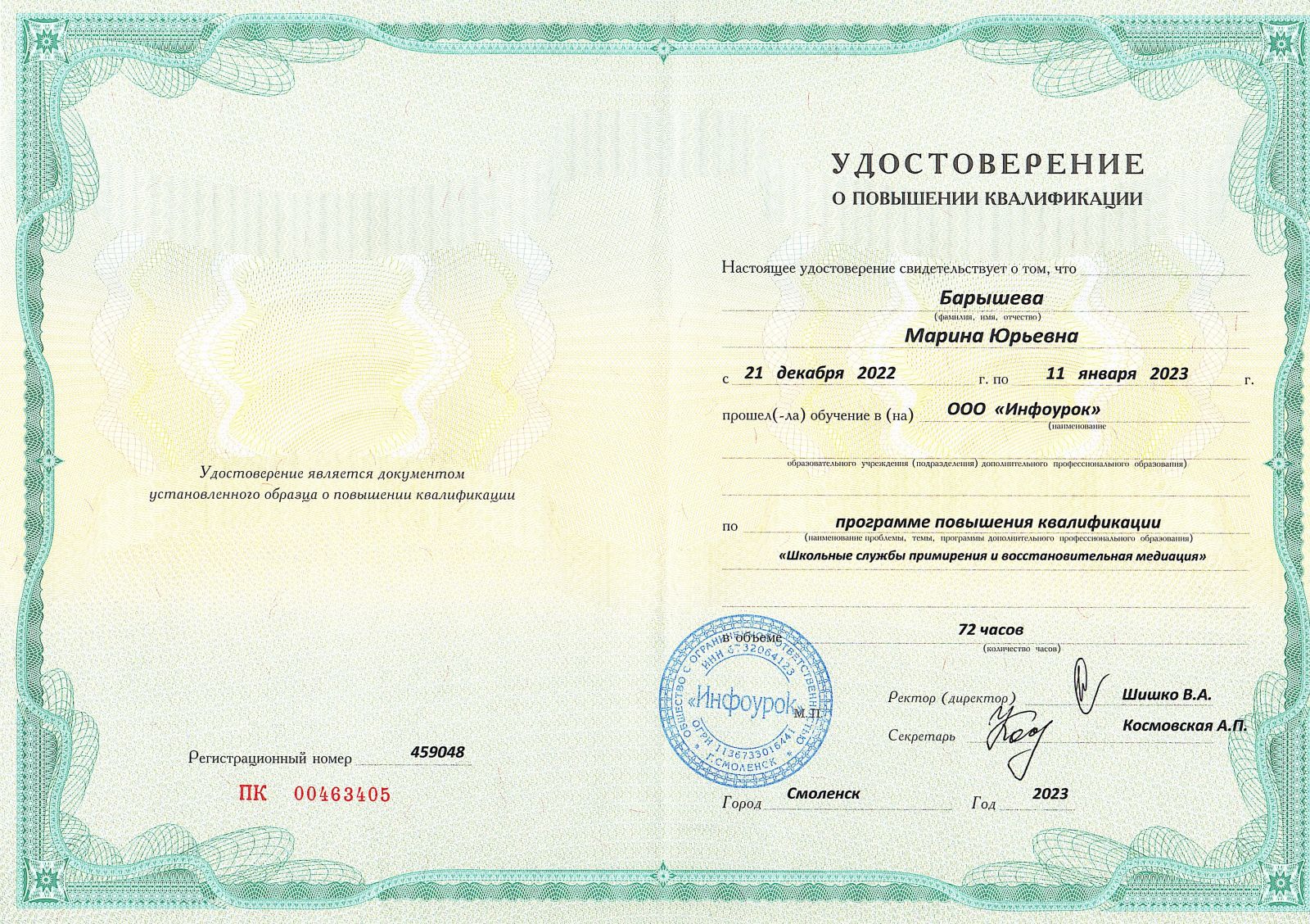 Удостоверение о повышении квалификации Коробочкина Г_И_