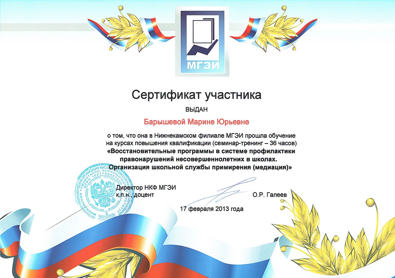Сертификат "Профилактика экстремизма среди молодежи"_ Мучейкина Н_В,