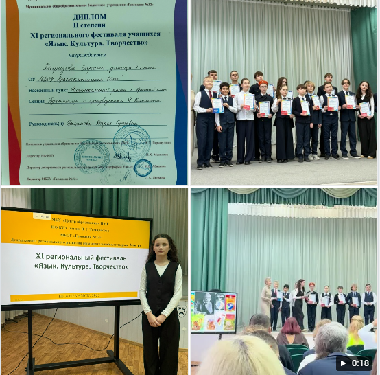 13 декабря на базе МБОУ «Гимназия 32» прошла торжественная церемония награждения Xl регионального фестиваля учащихся «Язык. Культура. Творчество».Поздравляем ученицу 7 А класса, Хафизову Зарину,со 2 местом.