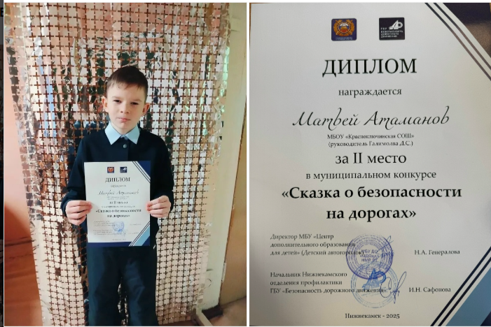 Атаманов Матвей, обучающийся 6А класса, занял 2 место в муниципальном конкурсе «Сказка о безопасности на дорогах».Желаем достигать все новых и новых высот и не останавливаться