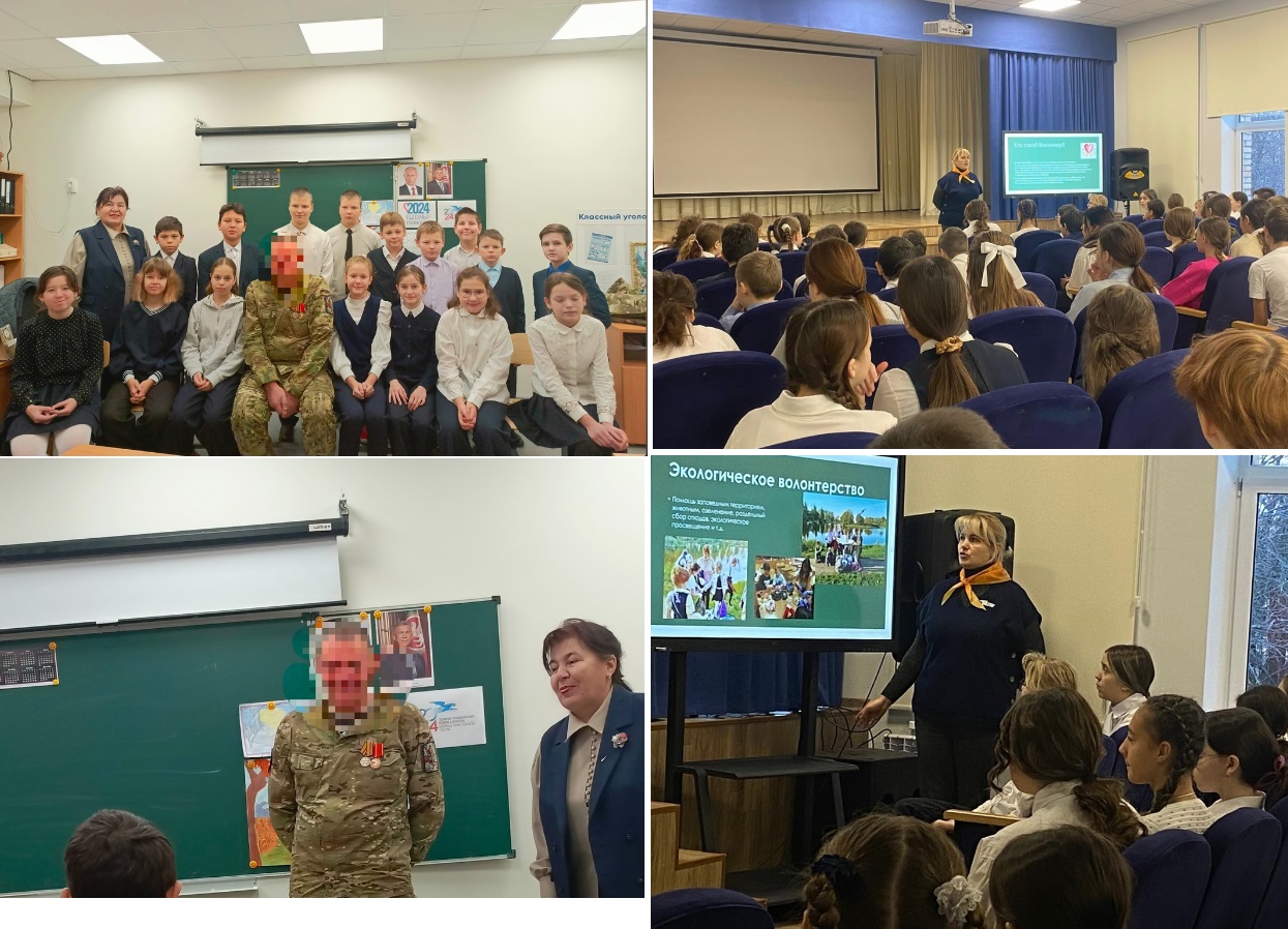 Лекторий «Волонтерские направления» провела Санникова Д.Н., совместно с классным руководителем Пестровой З.В. была организована встреча с добровольцем, участником СВО для пятых классов. -