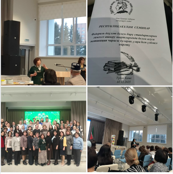 Согласно плану работы УО ИК НМР РТ 2 декабря 2025 г. на базе лицея N3 им.А.С.Пушкина состоялся республиканский практико- ориентированный семинар учителей родного(татарского) языка и литературы при участии автора УМК "Мин татарча сөйләшәм" Р.З.Хайдаровой. -