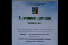 I место в муниципальном конкурсе по внутреннему озеленению общеобразовательного учреждения в номинации зеленый уголок