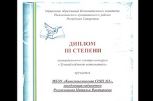 С 27 января по 2 апреля 2014 года был проведен муниципальный смотр-конкурс «Лучший кабинет математики», приуроченный «Году математики». В смотре-конкурсе приняли участие 32 городских кабинета и 10 сельских кабинетов. От нашей школы в конкурсе участвовал кабинет математики, которым заведует молодой учитель Рогожникова Н.В.. По итогам конкурса кабинет Натальи Викторовны занял почетное 3 место.