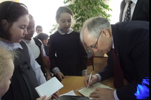 В данном мероприятии приняли участие учащиеся 2а класса нашей школы вместе с классным руководителем Едалиной Т.А. и библиотекарем Ивановой И.А. Аплодисментами встретили учащиеся гостя. Разиль Валеев ответил на вопросы читателей, поблагодарил за интерес к своему творчеству. Писатель удовлетворил просьбу детей и раздал на память всем желающим автографы.