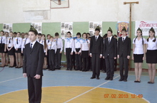 Сегодня в нашей школе прошел 3 день конкурса смотра строя и песни, посвященный празднованию 70-летия Сталинградской битве и Дню защитника Отечества. В конкурсе участвовали учащиеся с 3 по 11 класс. На конкурс были приглашены почетные гости – ветераны ВОВ Пчела А.М. и Коньков С.В. Так же присутствовали на конкурсе бывшие выпускники нашей школы, а теперь военнослужащие Шарифуллин Марсель выпускник военной академии г. Санкт-Петербурга и старший лейтенант Северо-Кавказского Федерального округа Захаркин Дмитрий.