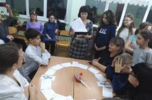 Учащиеся 6а класса вместе с классным руководителем Мингазовой Г.Ф. организовали интеллектуальную игру "Что? Где? Когда?" для мам.