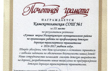 1 сентября состоялось вручение Почетной грамоты по результатам рейтинга "Лучшая школа Нижнекамского муниципального района по организации работы по профилактике детского дорожно-транспортного травматизма в 2016-2017 учебном году"