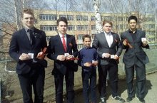 Учащиеся Камскополянской СОШ 1 провели среди жителей пгт Камские Поляны акцию "Георгиевская ленточка"