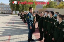 По легенде произошел пожар. Сработало оповещение, и кадеты под присмотром педагогов, сохраняя спокойствие, начали покидать корпус.