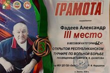 Поздравляем нашего воспитанника Фадеева Александра с очередной победой в Открытом Республиканском Турнире по вольной борьбе!