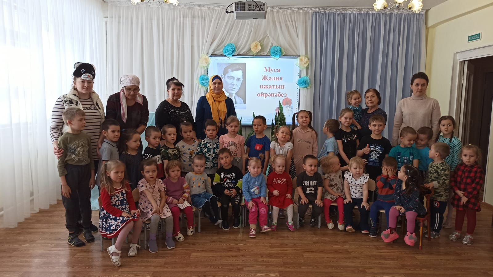 Опубликовано: 18.02.2022"Шагыйрь йөрәгендә шыткан җырлар бүген дә безнең йөрәк түрендә".Нәниләр өчен батыр - шагыйрь Муса Җәлилнең туган көнендә аның шигырьләреннән,җырларыннан торган балалар иртәсе үткәрдек.