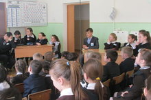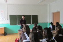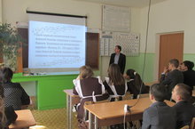 Профориентацион очрашу 09.04.2015 Орашуга мәктәпне тәмамлаган укучыбыз Халиков И. килде. Ул үзенең уку йорты, анда керү өчен имтиханнар тапшыру, тору шартлары турында сөйләде.