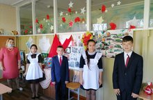 Классный руководитель 4 класса Гульчачак Саматовна на классном часе рассказала детям о том, что разрушительная, кровопролитная вторая мировая война, которая началась 1 сентября 1939 года нападением фашистской Германии на Польшу, закончилась в сентябре 1945-го года непродолжительной, но не менее жестокой и разрушительной войной с Японией. 2 сентября 1945 года Японское правительство подписало Акт о безоговорочной капитуляции. Южный Сахалин и Курильские острова были возвращены Советскому государству. Она также рассказала некоторые эпизоды и исторические факты этой ужасной войны.
