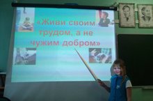 В рамках месячника по профилактике правонарушений в 5а классе прошел классный час по теме " Живи своим трудом, а не чужим добром" На классном часе ребята посмотрели и обсудили презентацию, подготовленную кл. руководителем Максимовой Т.Н. На занятии Татьяна Николаевна на примере народной мудрости и произведений классиков показала связь с современностью, необходимостью жить честно, не посягать на чужое имущество.Заключительной точкой в беседе была известная поговорка "Сколько веревочке не виться, а конец будет".