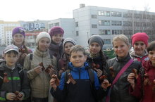 23 апреля школьники провели акицию "Георгиевская ленточка". В преддверии праздника они вручали прохожим на улице ленточки. а ветеранам войны вручали их на дому.