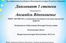 14.01.2021 Поздравляем ансамбль "Вдохновение" и их руководителя Габдулхакову И.Г. с заслуженной наградой. Мы гордимся вами!.