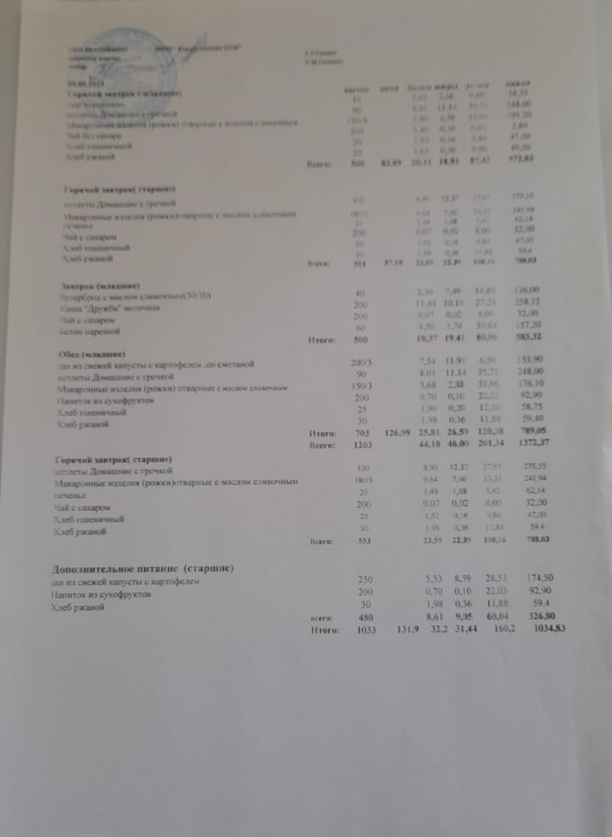 ФИО шеф-повара столовой: Гилаева Алия Махмутовна