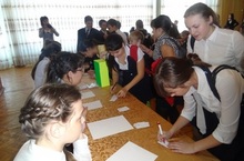 14 сентября на еженедельной общешкольной линейке состоялась инаугурация вновь выбранного президента гимназии 2012-2013-ого учебного года - Гаязовой Алины, ученицы 9Б класса. Алиной была произнесена клятва президента. Она выразила благодарность своим избирателям за оказанное доверие и поддержку. Кроме того, были провозглашены имена министров и премьер министра гимназии. Молодцы, ребята!!!