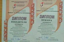 Ученики 2 класса Гоголев Вадим и Гайнетдинова Джамиля успешно выступили на очной республиканской олимпиаде "Эрудит" по математике! Вадим стал победителем, а Джамиля - призёром! Поздравляем учеников и их учительницу Кабышеву Галину Филипповну! Желаем дальнейших побед!