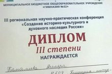 Наши ученицы Миннибаева Альбина (11а) и Махмутова Эндже (11а) стали лауреатами III региональной научно-практической конференции "Создание истрико-культурного и духовного наследия России", а Камалиева Диляра (3а) удостоилась диплома III степени! Поздравляем их и их научных руководителей, Фаттахову Ильсию Ильгамовну и Камалиеву Данию Василевну, и желаем дальнейших успехов!