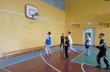 Спортотряд отрабатывает технику ведения и игровые приёмы в баскетболе.