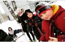 Сезон катаний на лыжах объявляется открытым. Ученики 5д на уроке физкультуры.
