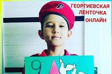 Галимов Амир из 4г класса (классный руководитель - Чагина Свтелана Владимировна) принимает участие в акции "Геогриевская ленточка".