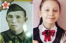 Самигуллина Милана, ученица 1б класса, и ее прадедушка Азаматов Зайнулла Шафигулович.