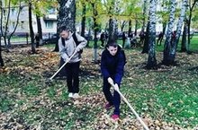 Приводят в порядок пришкольную террорию.