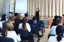 10 сентября у 10-11 классов состоялась встреча с Фокеевой Лейсан Рустамовной - старшим специалистом 3 разряда и Насыровой Алиной Викторовной - консультантом отдела развития и координации внутреннего рынка НТО Госалкогольинспекции Республики Татарстан.