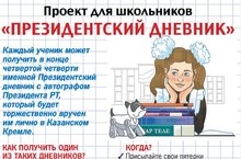 В целях формирования привлекательного образа современного педагога и повышения мотивации к получению знаний среди школьников РТ Министерством образования и науки РТ совместно с представительством газеты «Комсомольская правда» объявлен проект «ПРЕЗИДЕНТСКИЙ ДНЕВНИК».