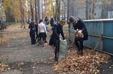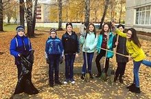 Ученики 7а класса вышли на уборку своей территории. Хорошая погода и отличное настроение - лучшие помощники!