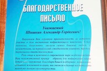 15 октября в рамках торжественного празднования 20-летия Ассоциации отцов Шишкин А.Г. - дедушка 7в и 5в классов, получил благодарственное письмо от председателя Ассоциации отцов города Нижнекамска Бликина А.И.