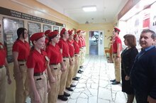В рамках месячника героико-патриотического воспитания в пятницу прошло традиционное занятие юнармейского отряда, на котором юнармейцы отрабатывали строевые приёмы в движении и на месте.