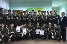 В гимназии-интернат №13 прошёл зональный этап "Смотра строя и песни" среди девушек, посвящённый Дню Защитников Отечества и 75-й годовщине Победы. Наш взвод выступил достойно и были награждены дипломом 3-й степени. По разборке и сборке автомата Калашникова, взвод девушек занял 2 место. По результатм тестирования в конкурсе "Лучший знаток по истории Отечества", Лобова Юлия заняла 2 место. Поздравляем взвод девуше и их координатора Скорич Г.И.