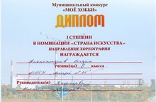 В нем приняли участие обучающиеся 6Г класса:1. Александров Б. (1 место) в номинации "Страна искусства" (направление хореография),