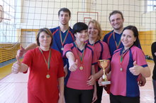 В соревнованиях по воллейболу мы первые. 09.04.2015