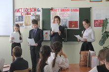 К 70-летию Победы- 70 добрых дел 19.03.2015 18 марта прошли открытые классные часы в 6-х классах. Классные руководители Хужанбердиева Ч.Т.-6б и Лукманова С.Р.-6г посвятили классные часы 70-летию Победы. Перед учащимися 6г класса выступил Власов В.Ф.-Почетный гражданин г. Нижнекамск, который поделился своими воспоминаниями о трудном детстве в годы войны. А учащиеся 6б класс выпустили уже 6 боевых листков, посвященных Героям Советского Союза и полным кавалерам орденов Славы. На классном часе рассказывали об их подвигах, пели песни времен войны, но самое интересное было выступление детей о своих прадедах. С огромным чувством гордости учащиеся демонстрировали фотографии, награды, благодарности своих прадедов. Каждый классный час оставил глубокий след в сердцах детей.