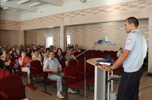 Встреча с представителем ГИБДД Авзаловой Л.Д. 07.05.2014 7 мая на линейках учащихся 5-8 классов выступила представитель ГИБДД Авзалова Л.Д.