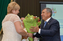 Республиканское августовское совещание работников образования и науки «Татарстан: образование инновационного региона» 15.08.2014 15 августа 2014 года в п.г.т. Богатые Сабы состоялось республиканское августовское совещание работников образования и науки «Татарстан: образование инновационного региона». В программе пленарного заседания был представлен доклад заместителя Премьер-министра РТ – министра образования и науки РТ Э.Н. Фаттахова, в котором подробно проанализировано состояние и тенденции развития образования в Республике Татарстан. Были озвучены рейтинги муниципалитетов и образовательных организаций. В рейтинге «За высокое качество образования» НМР находится на 8 месте, а лицей среди 100 лучших школ Татарстана занимает 17 строку. Во второй части заседания были вручены государственные награды РТ. Директор лицея №35 Зиятдинова Г.И. была награждена нагрудным знаком «Заслуженный учитель Республики Татарстан».