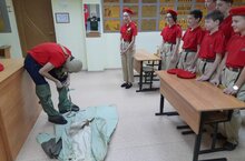 Очередное занятие юнармейского отряда было посвящено теме: «Основы медицинских знаний и доврачебная помощь», на котором юнармейцы познакомились с средствами индивидуальной защиты, средствами защиты органов дыхания, общевойсковым защитным комплектом.