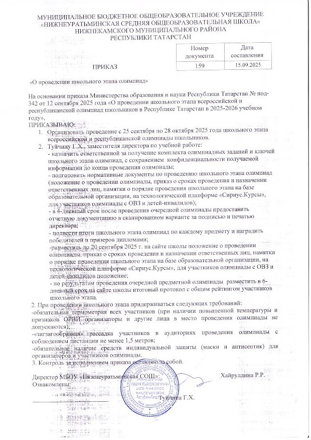 Приказ УО НМРТ РТ о проведении ШЭ 2023-2024.