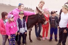 Воспитанники июньского реабилитационного заезда побывали в конноспортивной школе «Актай», где их катали на лошадях, пони и осликах, а также приняли участие в спортивно-игровом мероприятии «Веселые старты». Сладкие призы получили и участники, и болельщики. И как обычно победила дружба.