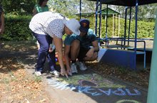 Конкурс рисунков на асфальте в технике стрит-арт «С Днём Рождения, любимый город!» прошёл 2 августа. Прогулочная площадка усилиями ребят превратилась в пёстрый яркий ковёр из воздушных шаров, цветов и поздравлений.