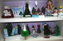 Какое разнообразие елочек, снежинок, снеговиков и Новогодних композиций ожидало жюри на конкурсе «Новогоднее настроение». Участвовали в конкурсе все от «мала, до велика». 42 работы выставлены на показ. Работы были как коллективные, так и индивидуальные. Активное участие в «Мастерской Деда Мороза» приняли все: дети, педагоги и родители. Победителей выявить сложно, всем участникам вручены «сладкие» призы.