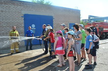 17 июня ребята смогли пообщаться с представителями одной из самых мужественных профессий - огнеборцами. Состоялась экскурсия в пожарную часть. Для ребят провели показательные учения по тушению и даже разрешили в этом поучаствовать! Мальчишки и девчонки примерили спецодежду пожарного, посидели в спецмашине, а в конце экскурсии ребят напоили ароматным чаем с вкусными пирожными!