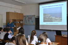 Урок начался с экскурса в прошлое полуострова, в нелегкую судьбу его народа. Учитель истории Адиатова О.Н. рассказала о древнем Крыме, о его городах, людях и событиях. Об историческом прошлом полуострова, о вхождении Крыма в состав Российской империи в 18 веке, о распаде СССР и выходе Крыма в 1991году. О непростых событиях сегодняшних дней, легендарном Черноморском флоте, героизме Севастополя в годы Великой Отечественной войны. Ребята посмотрели презентацию с историческими памятниками Крыма. Познакомились с датами и документами марта 2014года, которые стали историческими и дали Крыму и Севастополю новый статус в составе РФ.