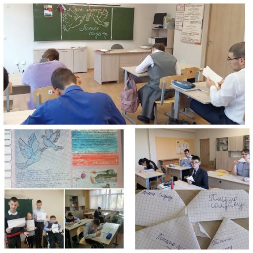 Сегодня в нашей школе был проведён Всероссийский открытый "Урок Мужества", на котором шёл разговор о героизме и самоотверженности наших солдат и офицеров, пожертвоваших свою жизнь в борьбе с фашизмом и нацизмом в ВОВ и во время специальной военной операции. Ученики приняли участие во Всероссийской акции "Письмо солдату". В письмах выразили огромную благодарность, пожелали успехов, здоровья и скорейшего возвращения домой.