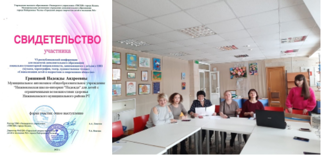 В рамках VI республиканской конференции для педагогов дополнительного образования социально-гуманитарной направленности проходивший в г.Наб. Челны, учитель музыки Гришина Н. А. приняла участие в работе круглого стола выступив по теме: "Социализация детей и подростков в обществе"